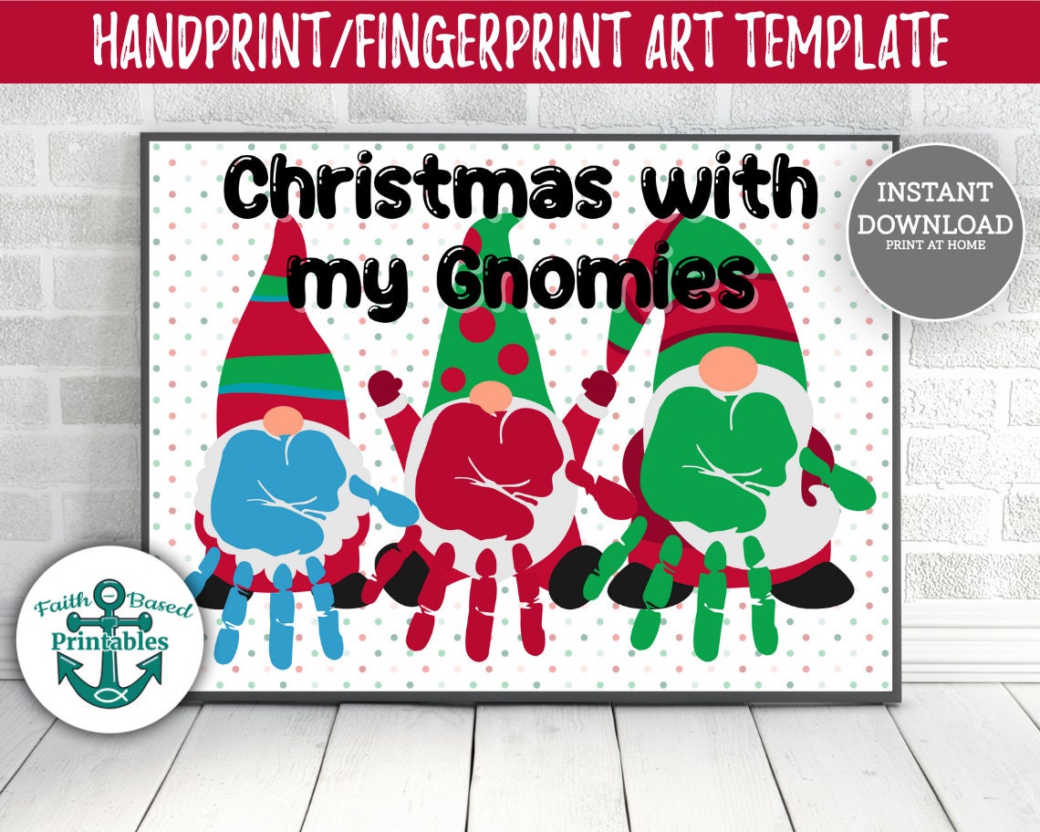 Gnome Christmas Handprint Art Craft Christmas With My Gnomies Hand Print Multiple Siblings Gnome Hands Fingerprint Craft Kids Toddler Print Instant Download Etsy